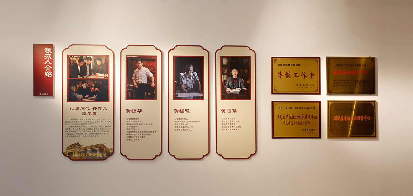 黄氏三兄弟均是国家级非物质文化遗产“仙作”技艺的代表性传承人,通过工厂传承的方式,以口传心授、亲身示范的方式,收徒传艺,继承发扬仙游古典家具制作核心技艺。 为三福和仙游古典家具行业培养了大批中坚力量让授艺的徒弟通过仙作技艺脱贫、创业,让仙作技艺在工厂传承中促进产业发展。